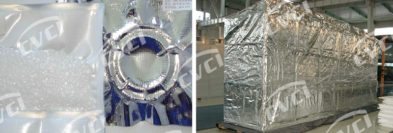 采用該產品包裝金屬制品后,可有效阻隔外界氧氣、水蒸氣、腐蝕性氣體、灰塵、陽光等進入包裝空間。在密封條件下可有效防止金屬銹蝕,并減緩橡膠、塑料等非金屬材料的老化變質,用于各種器材除氧、干燥、真空封存包裝,特別適用于電子、光學、儀表等精密器材的長期封存;也可用于大型設備、發(fā)動機、齒輪箱等大件器材的封套封存。